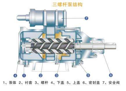 由于各螺桿的相互嚙合以及螺桿與襯筒內壁的緊密配合,在泵的吸 入口和排出口之間, 就會被分隔成一個或多個密封空間。隨著螺桿的轉動和嚙合,這些密封空間在泵的吸入端不斷形成,將吸入室中的液體封入其中,并自吸入室沿螺桿軸向連續(xù)地推移至排出端,將封閉在 各空間中的液體不斷排出,猶如一螺母在螺紋回轉時被不斷 向前推進的情形那樣,這就是螺桿泵的基本工作原理。