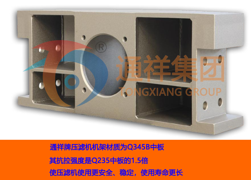 1.“通祥集團(tuán)”壓濾機機架材質(zhì)為Q345B中板,其抗拉強度是Q235 中板的1.5倍,使“通祥牌壓濾機”壓濾機使用更安全、穩(wěn)定,使用壽命更長。