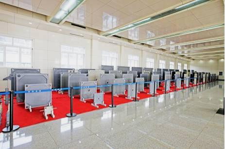 4.通祥集團(tuán)首先將免涂油灰技術(shù)應(yīng)用到壓濾機制造上,“通祥集團(tuán)”壓濾機所有金屬件全部經(jīng)過高速離心拋丸機噴砂處理,消除銹跡和氧化鐵皮。采用環(huán)氧云鐵底漆噴涂處理后,直接涂飾丙烯酸聚氨酯環(huán)保型油漆,不僅保護(hù)了環(huán)境,更重要的是提高了油漆的附著力和壓濾機的防腐等級。